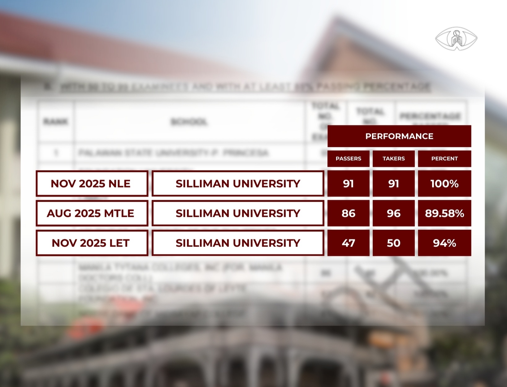 Backed by curriculum-focused academic preparation for its graduates, several Silliman University (SU) programs achieved record-high passing rates in the 2025 licensure examinations.